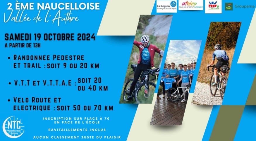 La deuxième édition de La Naucelloise aura lieu ce samedi 19 octobre 2024 à Naucelles. Organisée par Naucelles Trail Cyclisme, le principe reste le même : aucun classement, juste du plaisir...