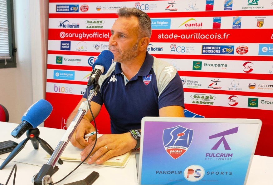 Légende photo : Le coach aurillacois, Roméo Gontineac, en conférence de presse d'avant-match, ce mercredi 10 septembre 2025 ©Guillaume TILLY