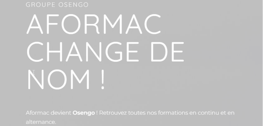Spécialiste de la formation professionnelle, l'Aformac, aujourd'hui implanté dans 4 grandes régions (Auvergne Rhône Alpes, Centre Val de Loire, Nouvelle Aquitaine, Occitanie) devient OSENGO.