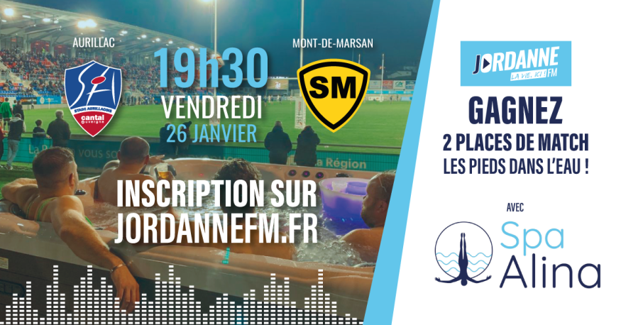Tentez de gagner les 2 places les plus chaudes et confortables du stade, dans un SPA Alina, avec 2 joueurs du Stade Aurillacois, apéritif offert, et repartez avec un ballon de rugby dédicacé et une écharpe de supporter !
