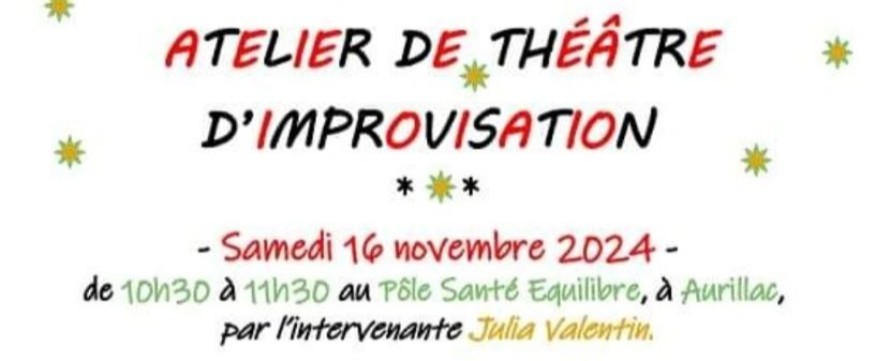 Julia Valentin va animer un atelier de théâtre d'improvisation le samedi 16 novembre de 10h30 à 11h30 au Pôle Santé Équilibre à Aurillac.