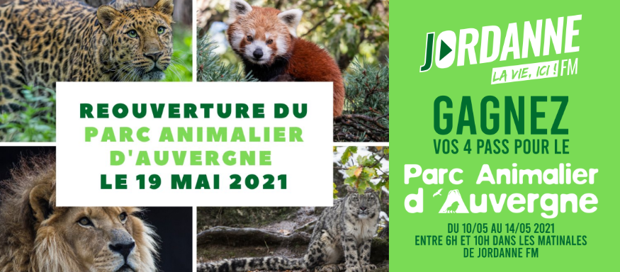 A l'occasion de la réouverture des Parcs le 19 mai prochain, Jordanne FM vous offre vos invitations pour 4 personnes au Parc Animalier d'Auvergne !