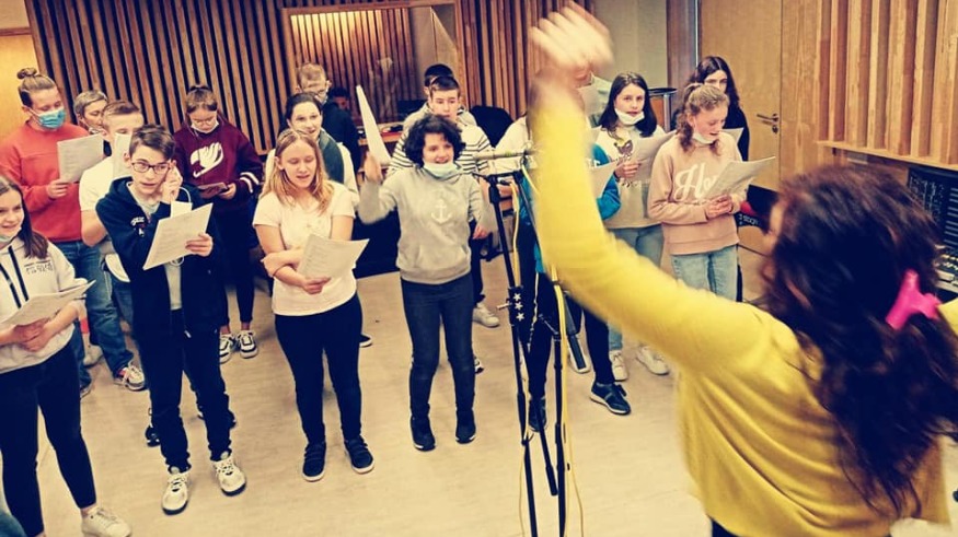 Chant, écriture, travail vocal, mise en voix et labo sonore... Marion Claux, du Collectif Solitaire, accompagne la quinzaine de collégiens dans les étapes de création.