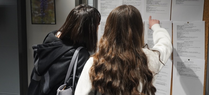 Légende photo : Deux lycéennes qui consultent les offres d'emploi. ©Jordanne FM