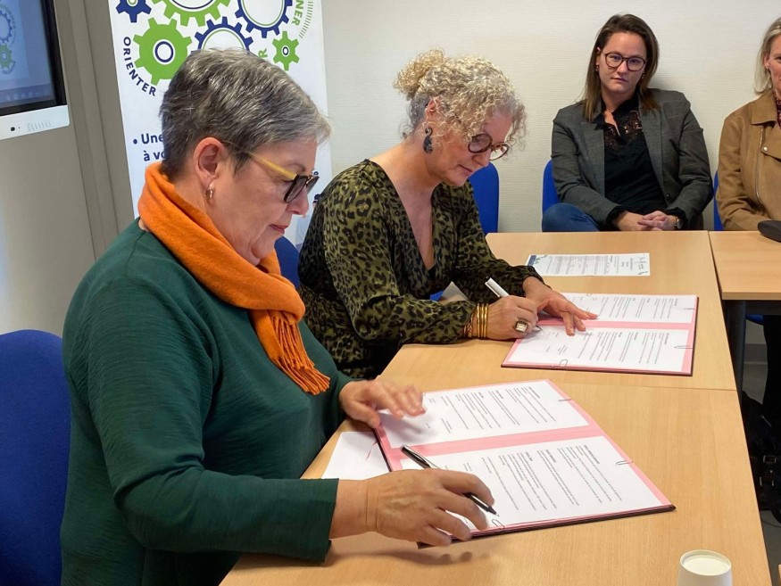 Légende photo : Signature de la convention entre Marie-Hélène Malvaux, directrice du DAC 15, et Dominique Beaudrey, Conseillère départementale déléguée à l'emploi, l'insertion et au logement.