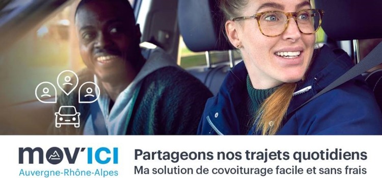 En tant qu'autorité organisatrice des transports, La Région Auvergne-Rhône Alpes a créé MOV'ICI, une solution de covoiturage accessible en ligne et en temps réel sur mobile.
