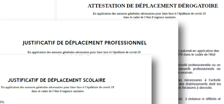 COVID 19 : LES ATTESTATIONS DE DEPLACEMENT INDISPENSABLES