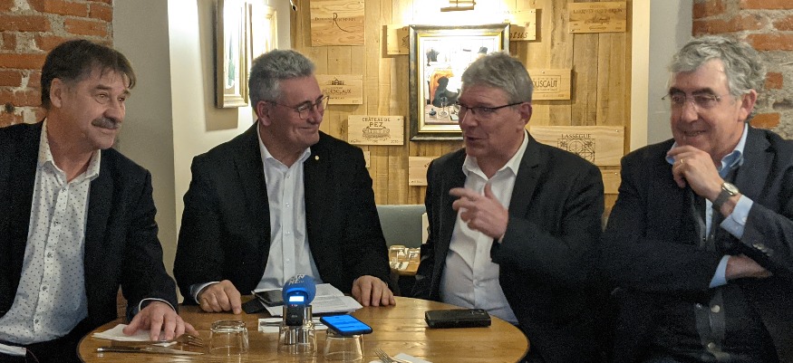 Légende photo, de gauche à droite (masques retirés pour la photo) : Jean-Yves Bony, député 2è circonscrition du Cantal - Pascal Coste, président du Conseil Départemental de la Corrèze - Bruno Faure, président du Conseil Départemental du Cantal - Vincent Descoeur, député 1ère circonscription du Cantal.