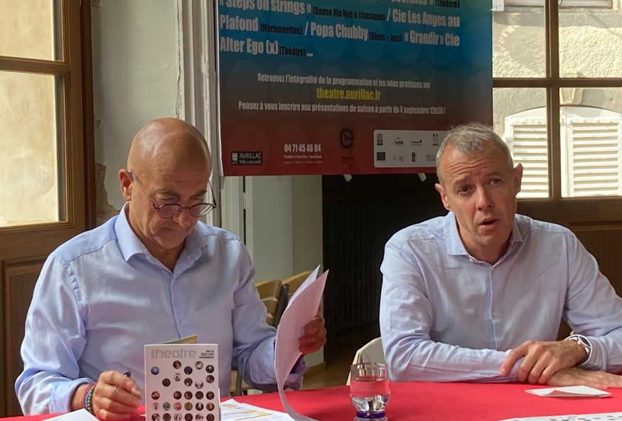 Légende photo : à gauche, Dominique Bertrand, directeur du théâtre d'Aurillac ; à droite, Frédéric Sérager, adjoint à la mairie d'Aurillac en charge des affaires culturelles.