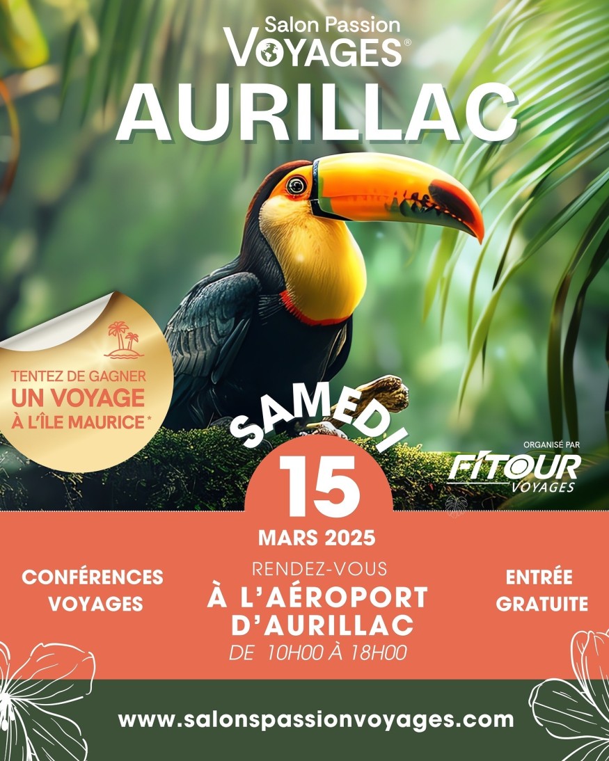 Le salon Passion Voyage de l'agence Fitour, s'installe ce samedi 15 mars à l'aéroport d'Aurillac. L'occasion de faire le point sur les destinations phares, de découvrir les nouvelles façons de voyager et de concrétiser ses envies d'évasion, le tout dans une ambiance conviviale et riche en échanges. Un avant-goût de vacances !